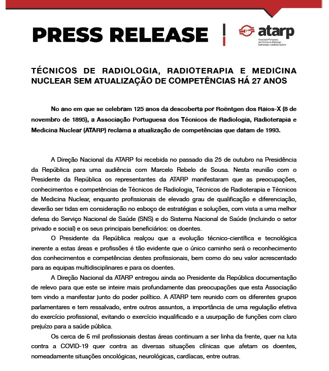 Na semana passada a Direção Nacional da ATARP, através da assessoria de imprensa, enviou às redações dos meios de comunicação social o seguinte Press Release: